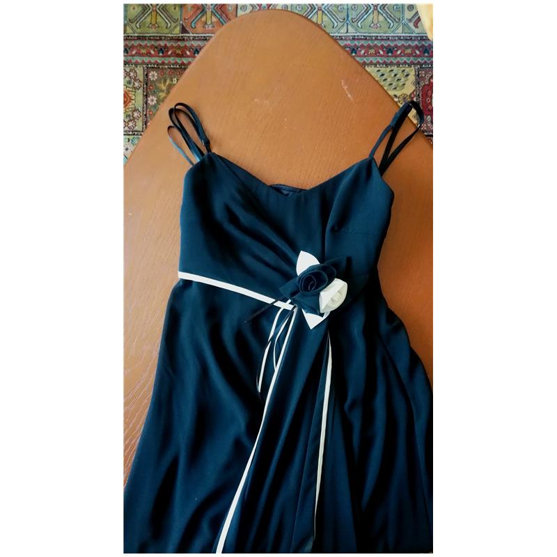 توضیح: پیراهن بندی حریر سیاه، گلدار، تا روی زانو