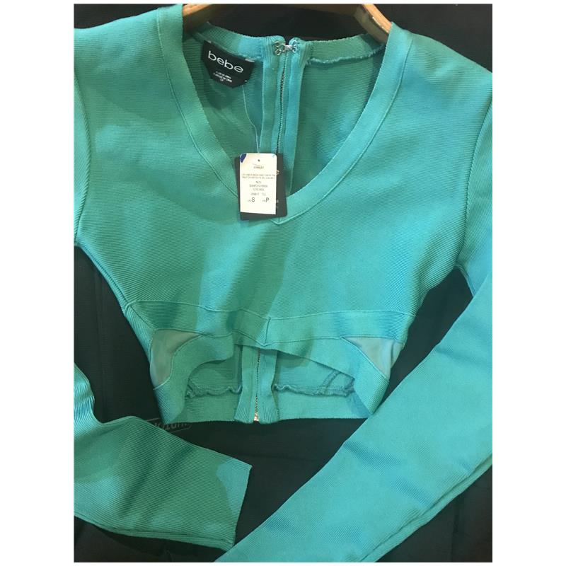 توضیح: نيم تنه سبز برند bebe سايز small پشت لباس زيپدار